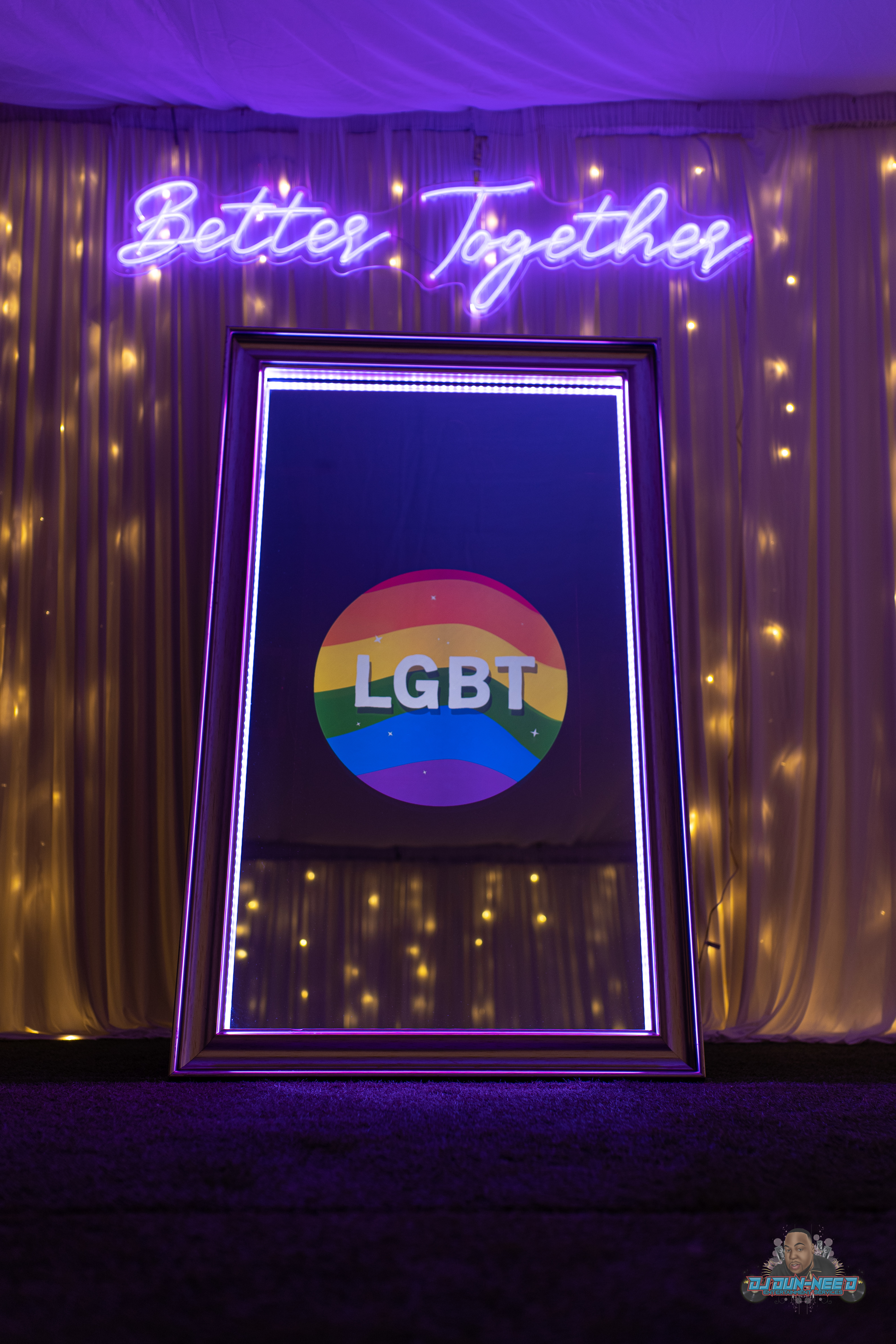 Mirror Me Booth takes photo booth fun to a whole new level. As guests walk up to the mirror, colorful animations and a voice guidance invite them to engage in a magical, interactive “selfie” experience presenting a photo keepsake.